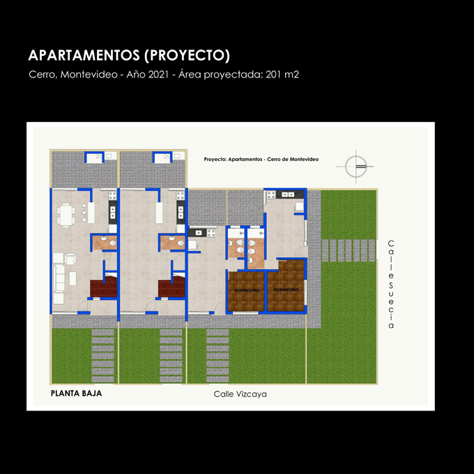 - Área proyectada: 201 m2